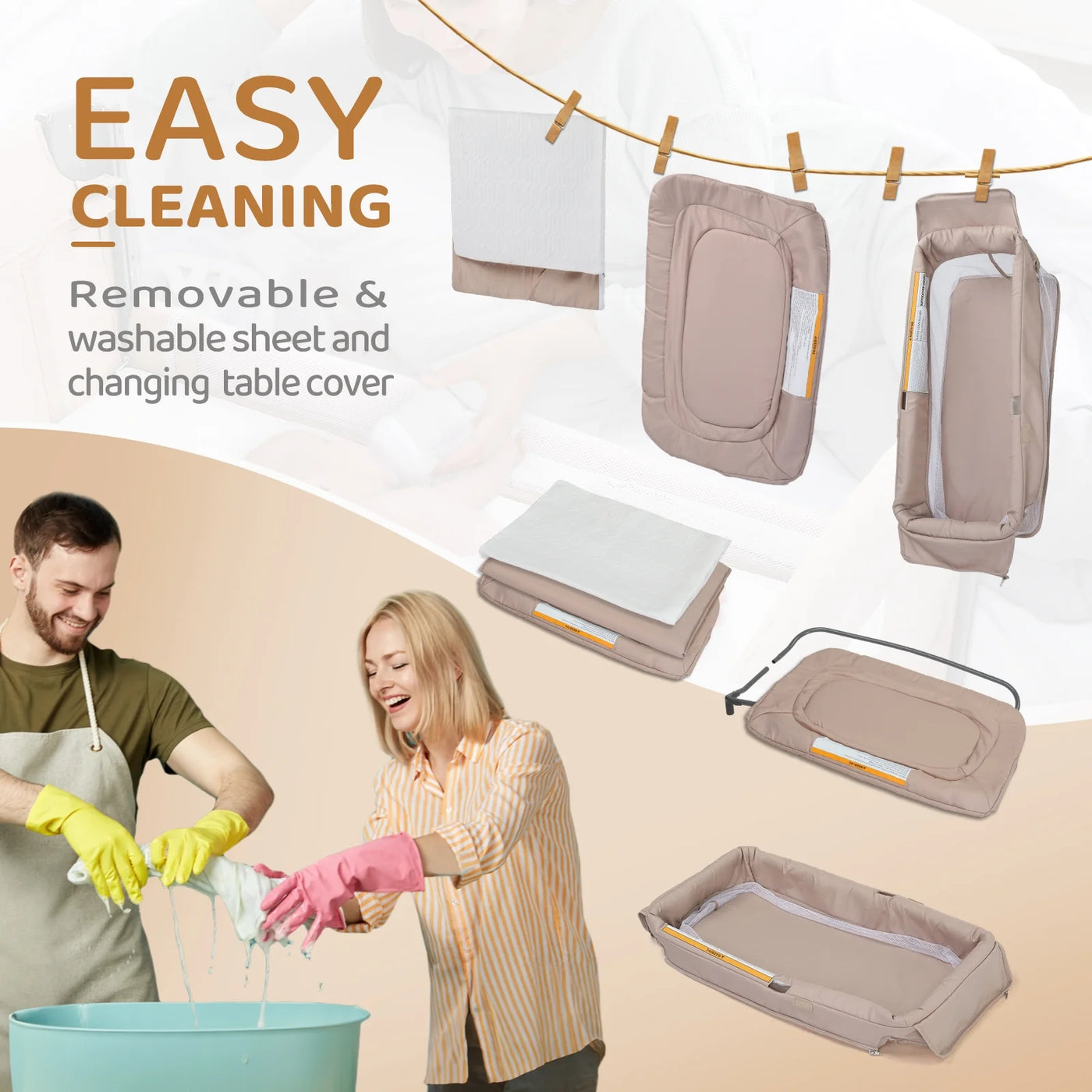 - Portable diaper changing table makes diaper changes a breeze, with included sheet for easy cleaning and replacement