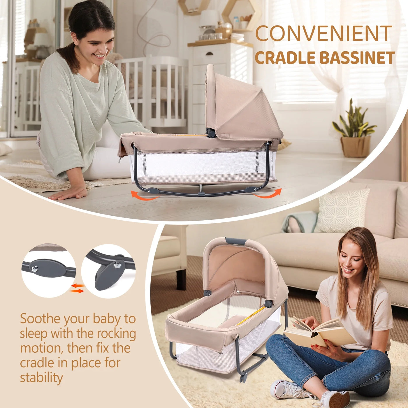 - Removable Rock-A-Bye Bassinet provides a cozy and secure space for your newborn baby