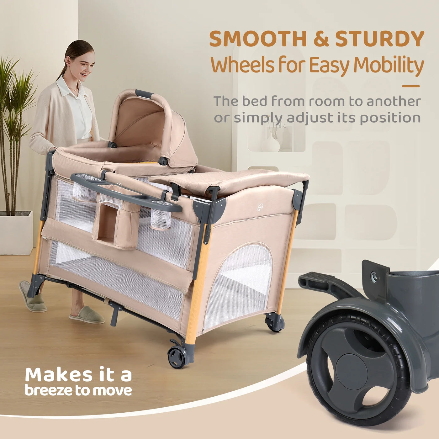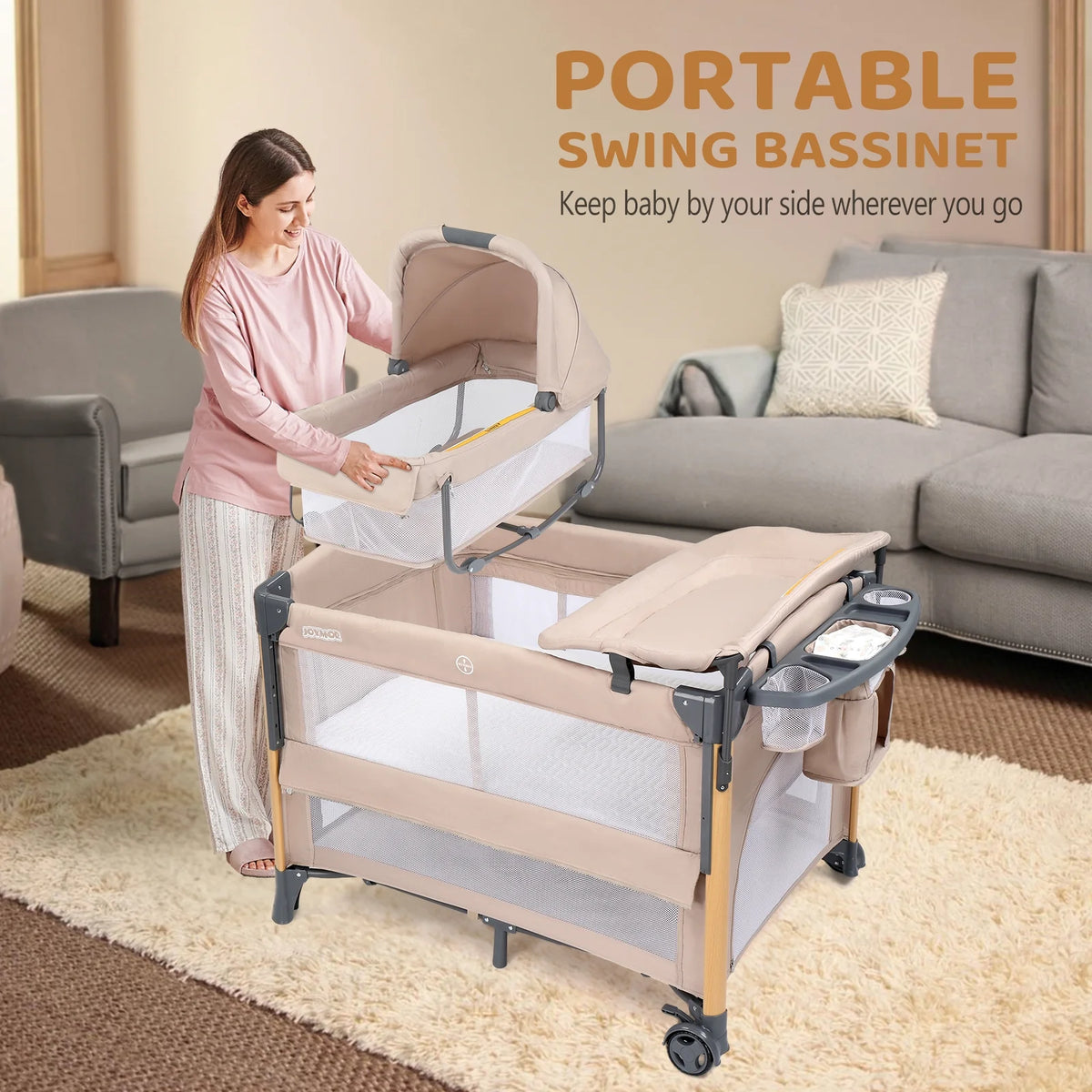 Introducing the JOYMOR Baby Bassinet with Changing Table and rock bassinet - the ultimate all-in-one solution for new parents. This versatile and convenient baby bed combines a bassinet, changing table, and playpen in one compact package, making it the perfect addition to any nursery or on-the-go setup. The removable Rock-A-Bye Bassinet provides a cozy and secure spaceThe portable crib with mattress included offers comfort and support. Designed with convenience in mind, this pack n play is incredibly easy to use. Its quick and easy setup and takedown make it a breeze to assemble and disassemble. The portable diaper changing table ensures that diaper changes are hassle-free, while the included wheels allow for effortless movement from room to room. Choose the JOYMOR Baby Bassinet with Changing Table for a convenient, safe, and comfortable solution for your baby and changing needs.