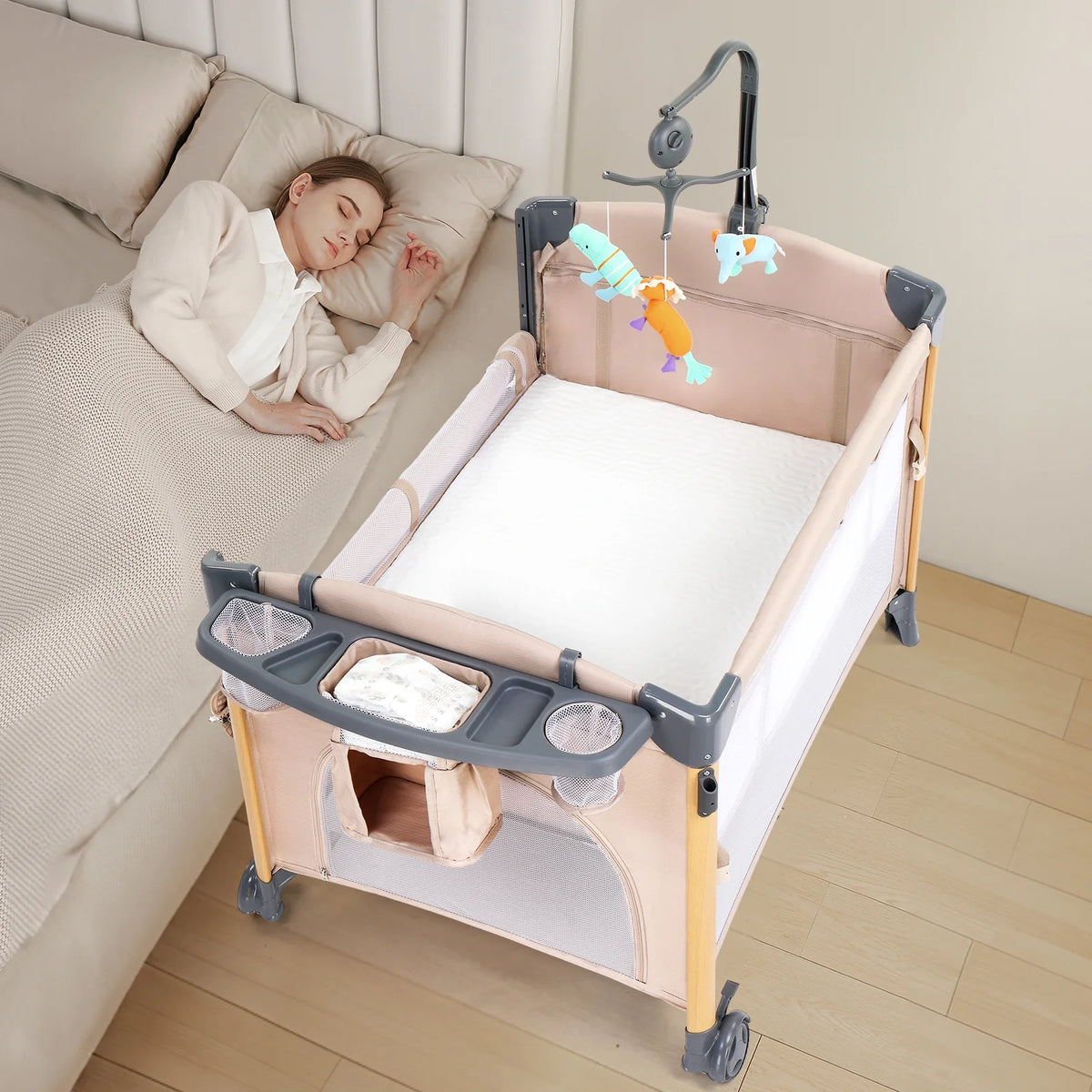 - Includes Music Mobile, Extra Sheet, and Co-Sleeping Mode Fastening Straps for added convenience