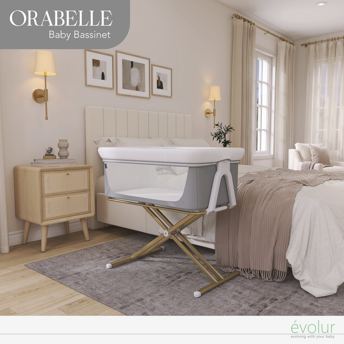 We know all that glitters is not gold but your prayers have been answered with Orabelle – Evolur introduces the modern and comfortable Orabelle Convertible Bassinet. A thoughtfully- designed bassinet that keeps your baby right by your side and provides peace of mind during those first few months of parenthood. This JPMA-certified bassinet features a free-pull up, one- hand easy up-and-down mechanism, making it easy to get a glimpse of your newborn through the night to reassure, cuddle or feed them. Better yet, the Evolur Orabelle Bassinet is ideal for small spaces and can be used with the legs folded. This wonderful bassinet also includes a mattress pad with a removable mattress cover. The Evolur Orabelle Bassinet comes in 2 trendy finishes that blend with your room décor - Black & Gray. Product dimensions are 14” L X 30” W X 36.5” H, with a weight of 19.8 lbs. This product can be used for children aged between 0-6 months and has a maximum weight capacity of 25 Lbs.