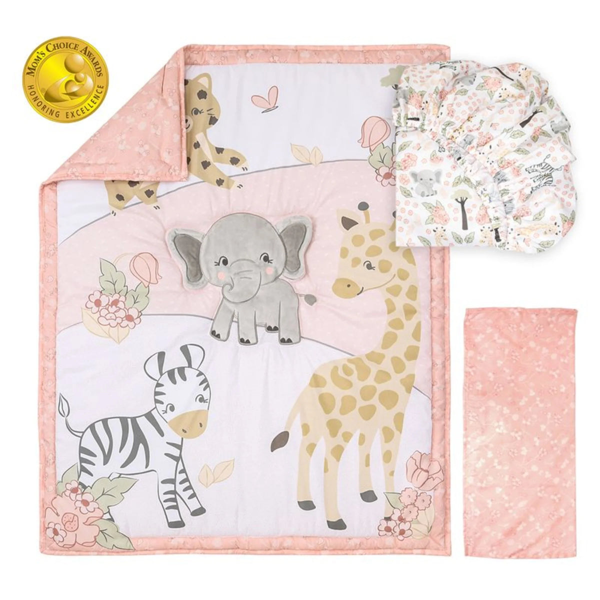 Pink and Grey Wildest Dreams Crib Bedding Set for Baby Girls, 3 Piece Nursery Set