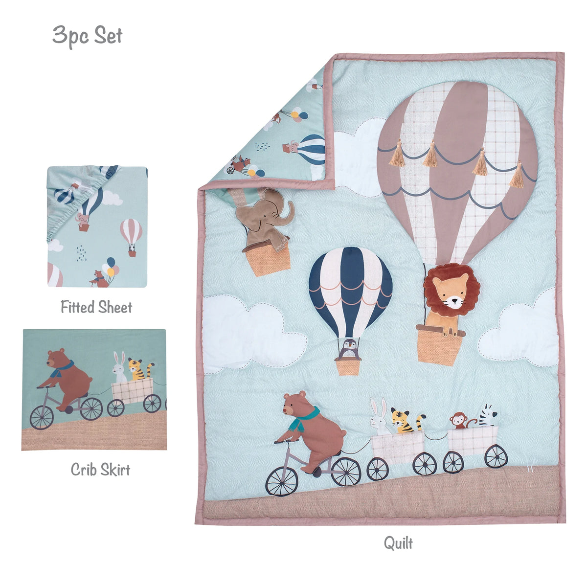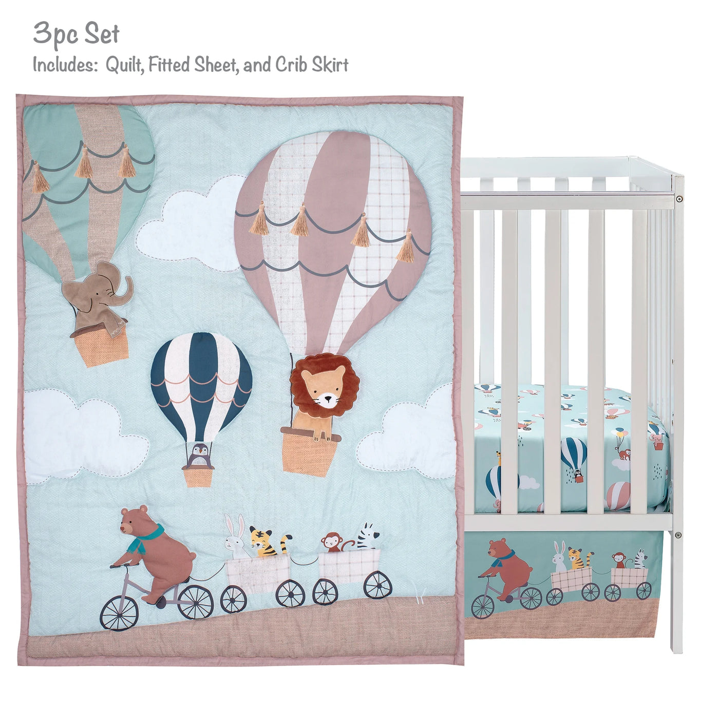 up up & Away 3-Piece Animals/Hot Air Balloon Crib Bedding Set