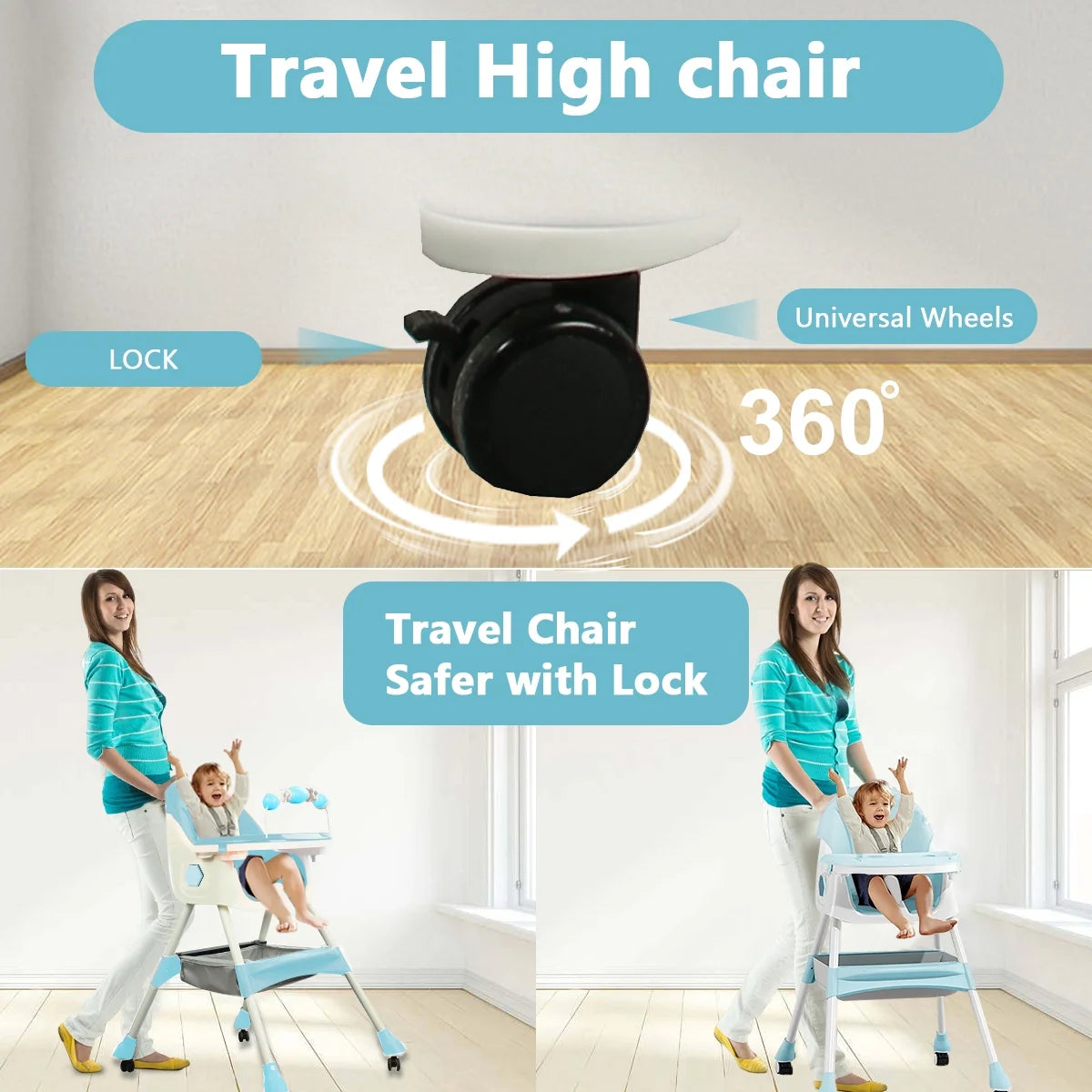 MONEHANE kids highchair is made of thickened heavy duty stainless steel for durability, shock absorption and load bearing. Its seat is made of PP material that helps to provide fatigue resistance and provide maximum comfort. The sturdy construction provides comfort, stability and ergonomics for your baby. 4 in 1 products - baby high chairs, baby high chairs and trays, toddler chairs, and large children's tables and chairs to suit every stage of your child's growth. Keep your baby safe and comfortable with the 5-point harness. Easy-to-clean seat with wipeable EVA foam seat cushion. The straps wipe clean and are machine washable. Machine washable seat cushions make cleaning easy. Our high chair includes a double deck that also locks, so you only need to remove the upper deck for cleaning after your baby has eaten, and the lower deck also provides baby play space for your handy toys. There is also a telescopic design next to the seat, and three adjustable positions provide more space and flexibility for fast-growing children.ASTM and CPSC compliant baby highchair with convertible height and 360° double tray & play toy rack.