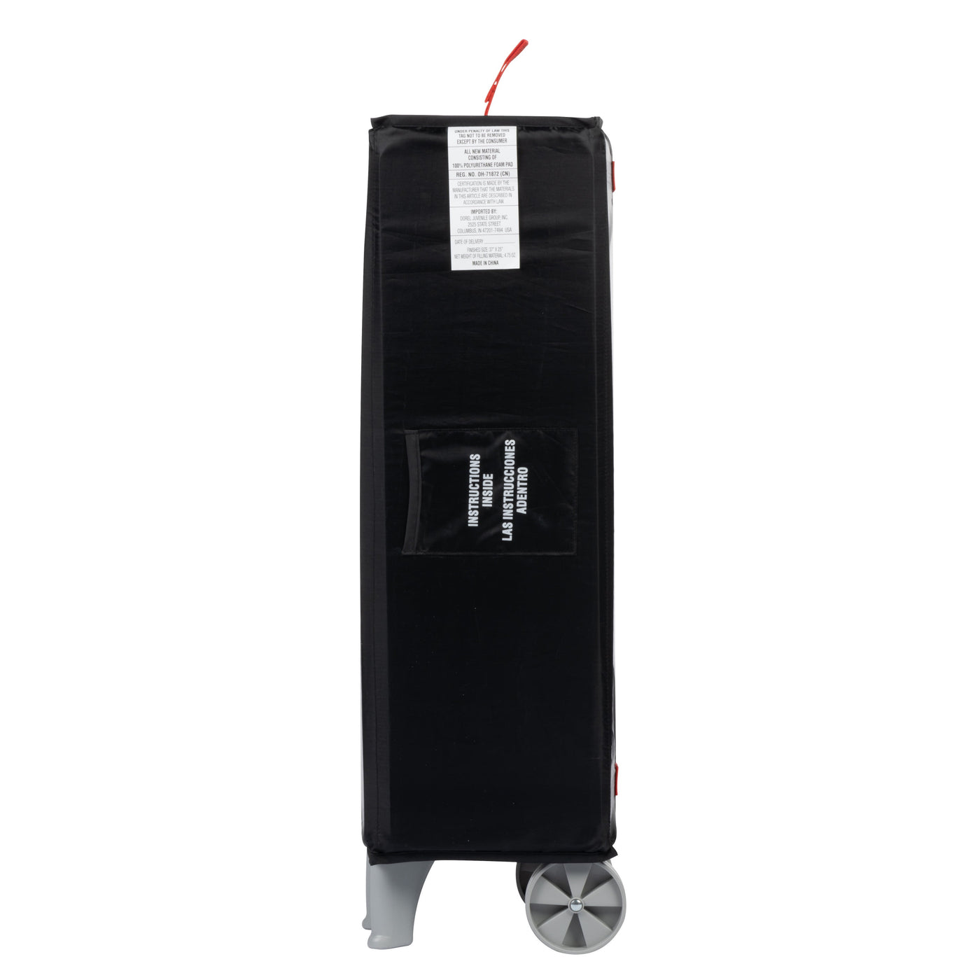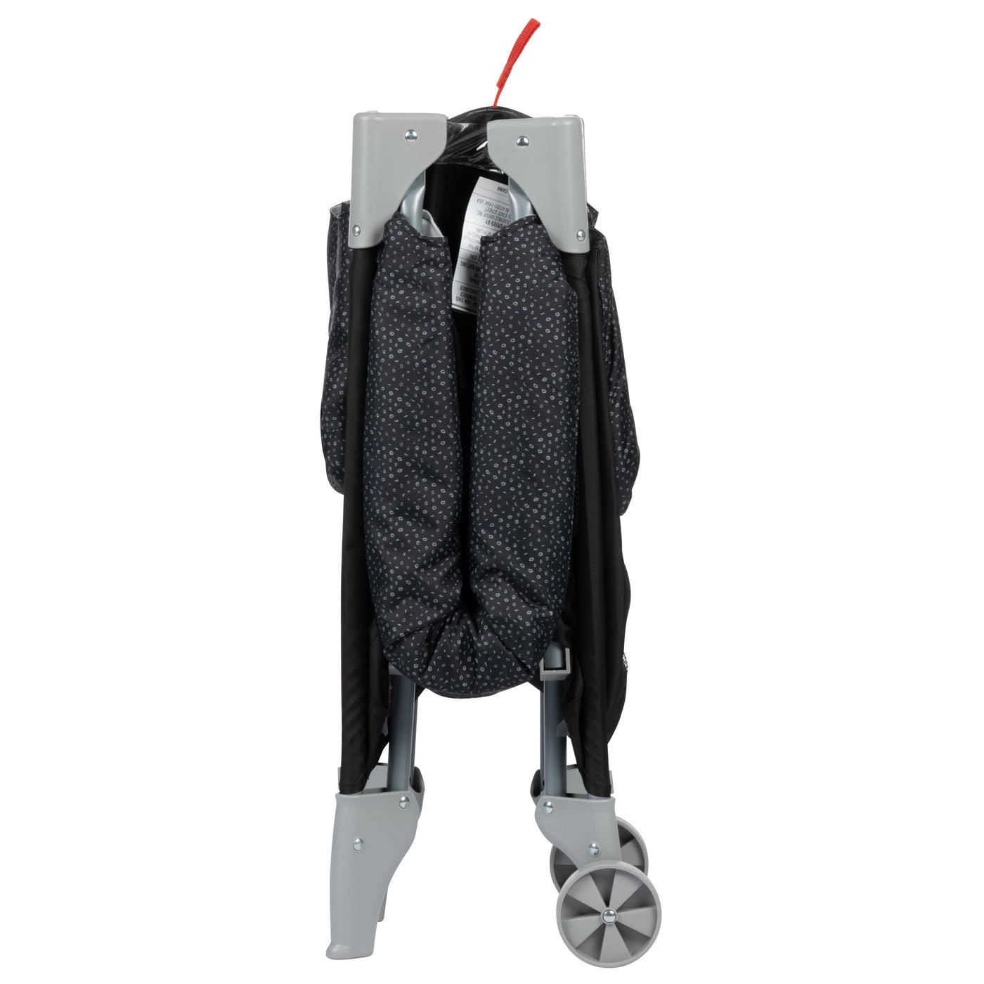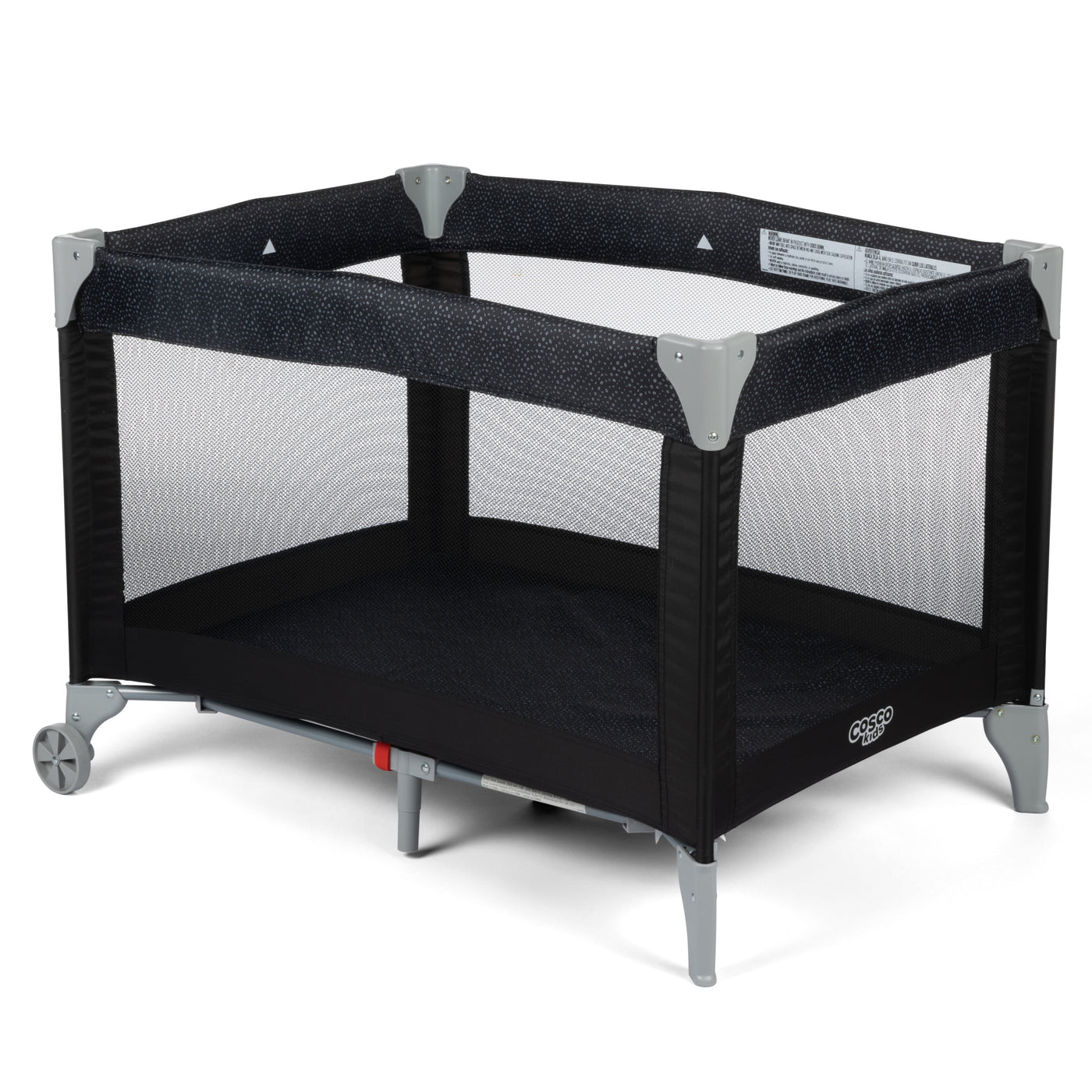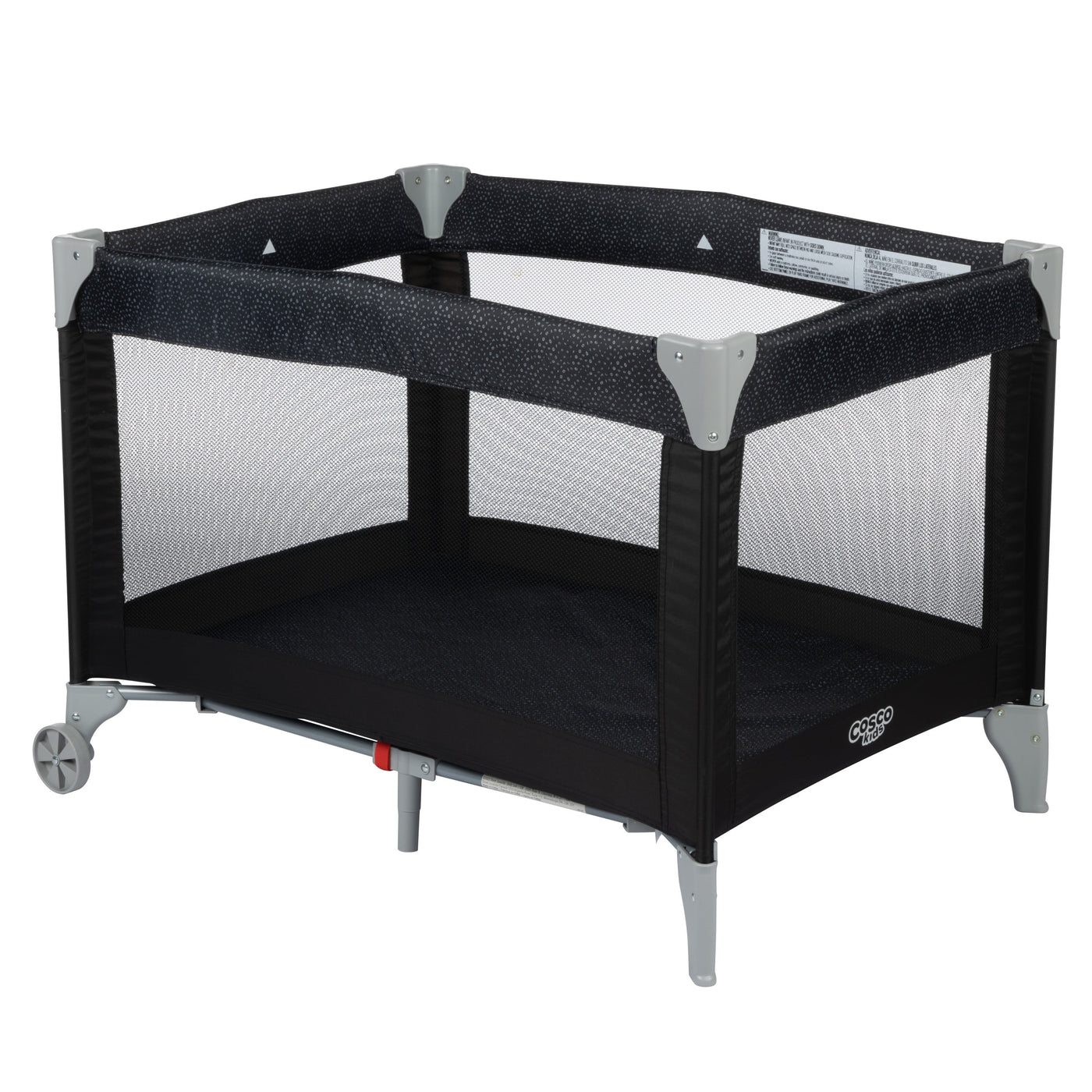 The Cosco Kids Funsport Portable Compact Baby Play Yard with Carry Bag in Noir Dot offers a versatile and reliable space for your infant or toddler to play and rest. This playpen for babies and toddlers is designed to be a compact yet roomy option, providing a fun environment right where you need it. With its 4 mesh sides and padded floor, this playard for babies and toddlers allows your little one full visibility of the world around them and lets you easily keep an eye on them during playtime. The Cosco Kids Funsport can be effortlessly moved around thanks to the convenient wheels on one end, making it a must-have playpen for babies. When traveling, this play yard can be folded compactly into the included carry bag, making it an ideal choice for weekend trips or visits to Grandma's house. This product is designed with a firm, flat sleeping surface that meets the Consumer Product Safety Commission's recommendations for safe sleep.