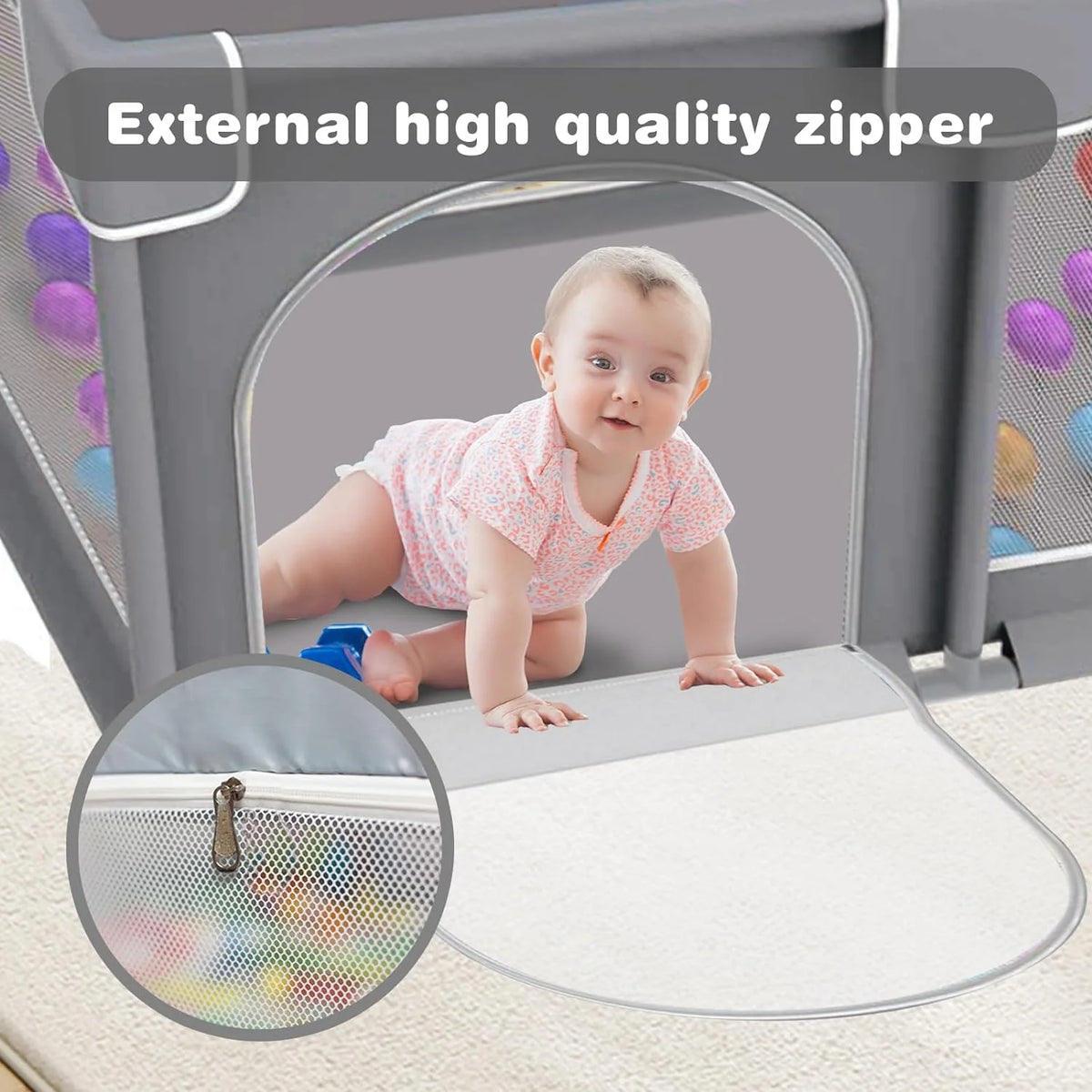 Baby Playpen, 50X50X27" Large Activity Center with Gate, Anti-Slip Base, Gray - 50" X 50" X 27"