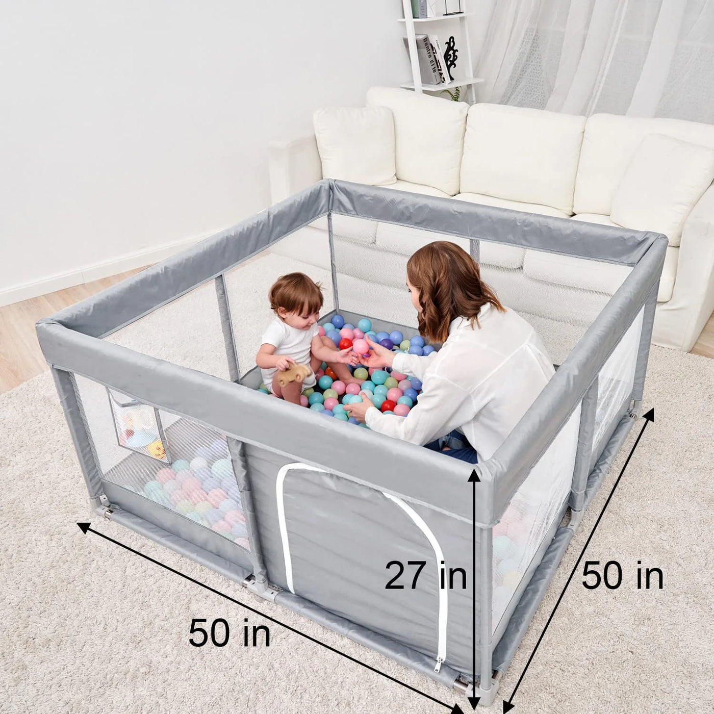 【 Play-View Enclosure】The breathable grid allows your baby to interact with mother outside the pen from multiple sides at any time. You can relax on the couch while watching your baby playing. The double-zippers prevent the baby from accidentally climbing out and getting injured.
