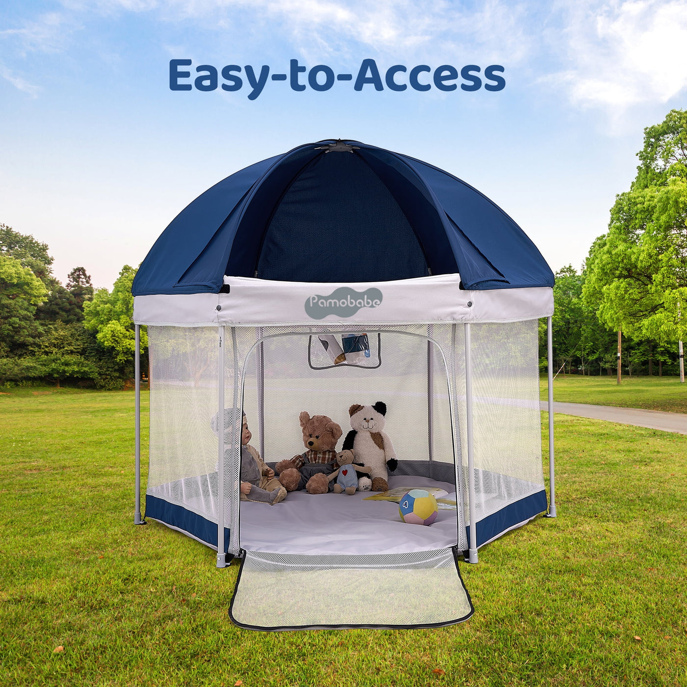 Outdoor Baby Playpen, Portable, Lightweight, Toddler Playard with Canopy and Travel Bag - Blue - Blue