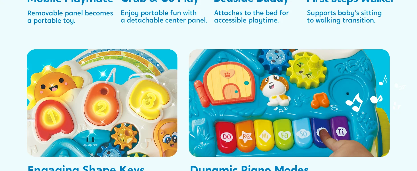Detachable Multi-Scenario Play Panel: This baby push walker includes a removable play panel that can be used separately on the floor, attached to a crib, or played with on the walker, offering versatile play options for baby toys 6-12 months