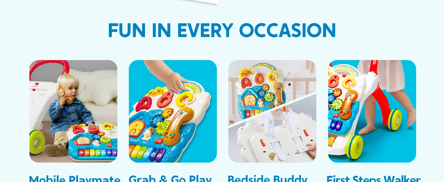 Interactive Volume Control Design: Includes a volume control switch with options for off, volume down, and volume up, ensuring a pleasant playtime experience with this walker baby will love