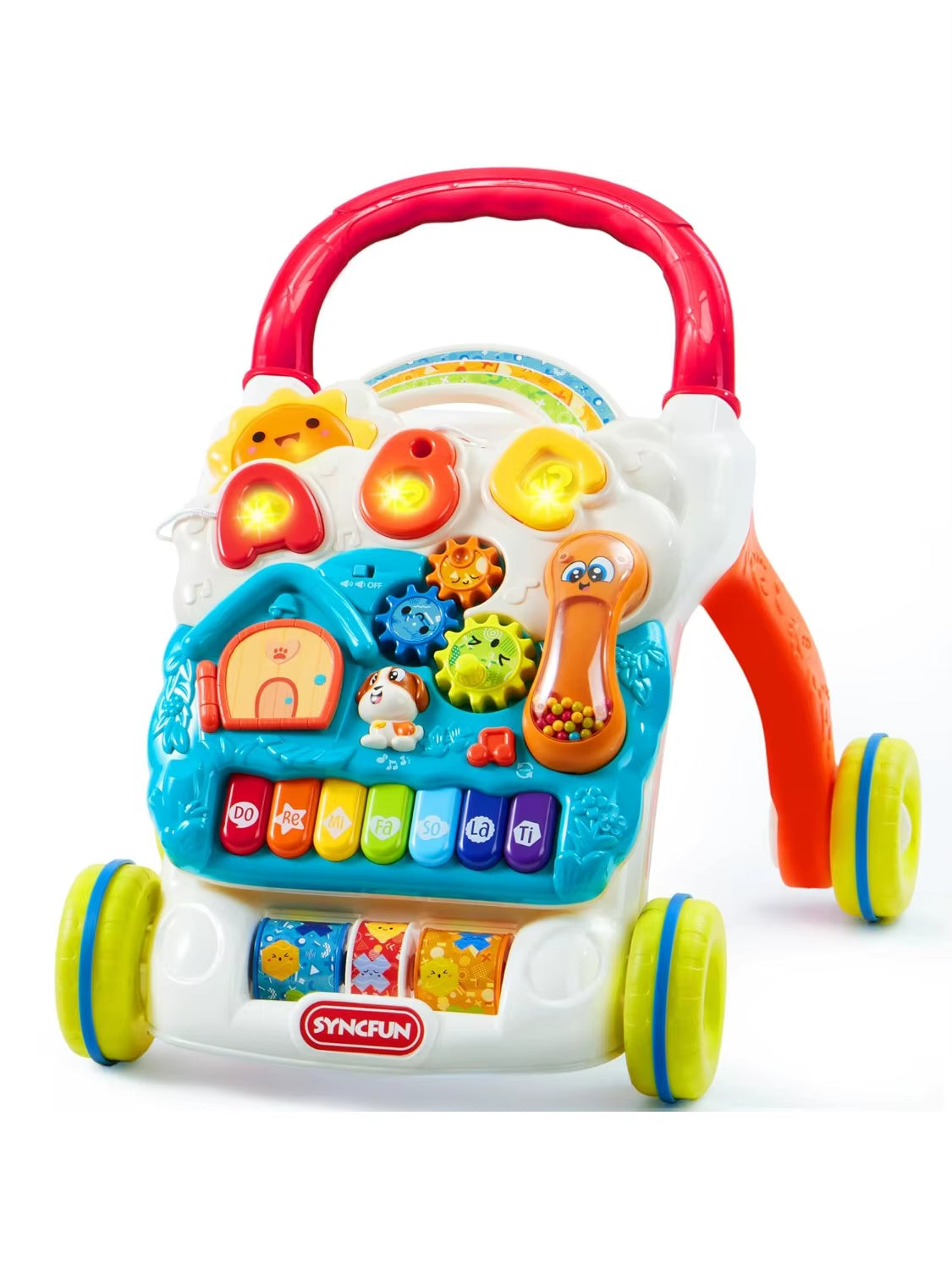Engaging Audio-Visual Play: Equipped with light-up buttons, sound features, and a piano panel with seven modes, this walker for baby boys and girls provides endless entertainment. ABC buttons, rolling wheels, and a phone with interactive sounds make it a good choice for baby toys