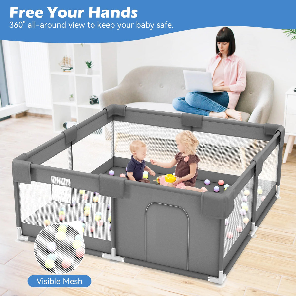 🌟babyeap baby playard creates a safe and independent activity space for your little one, giving parents peace of mind even during busy moments. playpen for baby with its 360° all-round view design, you can easily keep an eye on your baby from any angle.