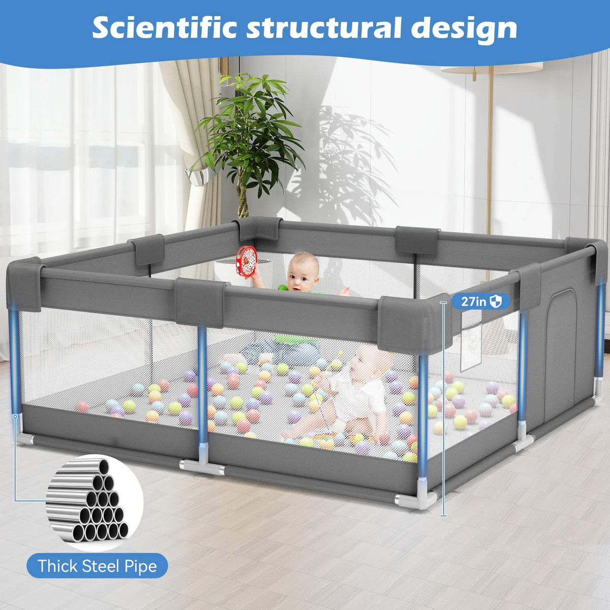 💕【Easy to Assemble】:Baby playpen is made of equal-length steel tubes and high-strength plastic connectors, allowing for easy assembly without any tools. Quick and convenient to set up, it creates a safe and sturdy play area for your baby.